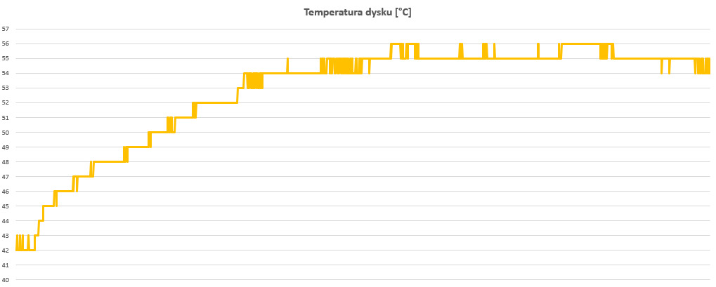 Nieco cieplej było podczas grania, bo momentami udało się dobić do 56 stopni Celsjusza. Oczywiście, jest to w pełni bezpieczna wartość, będąco daleko przed granicą 70 stopni Celsjusza, jakich nie powinniśmy przekraczać.