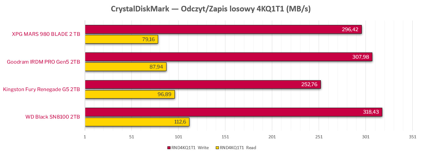- Odczyt i zapis losowy 4K (IOPS):