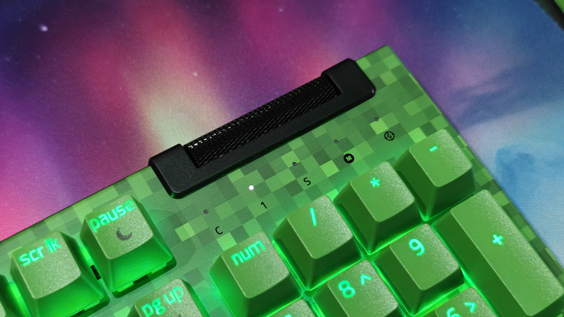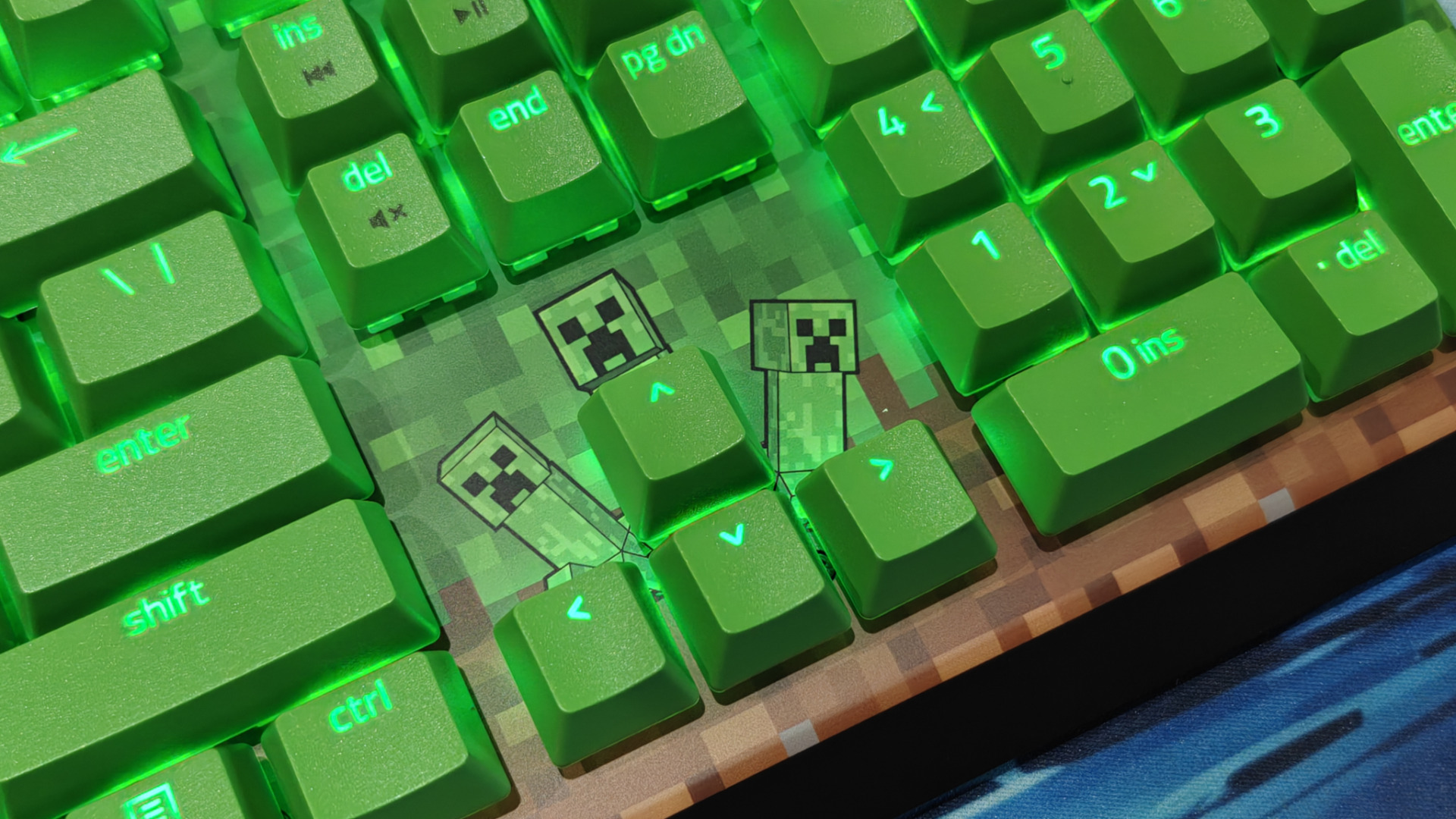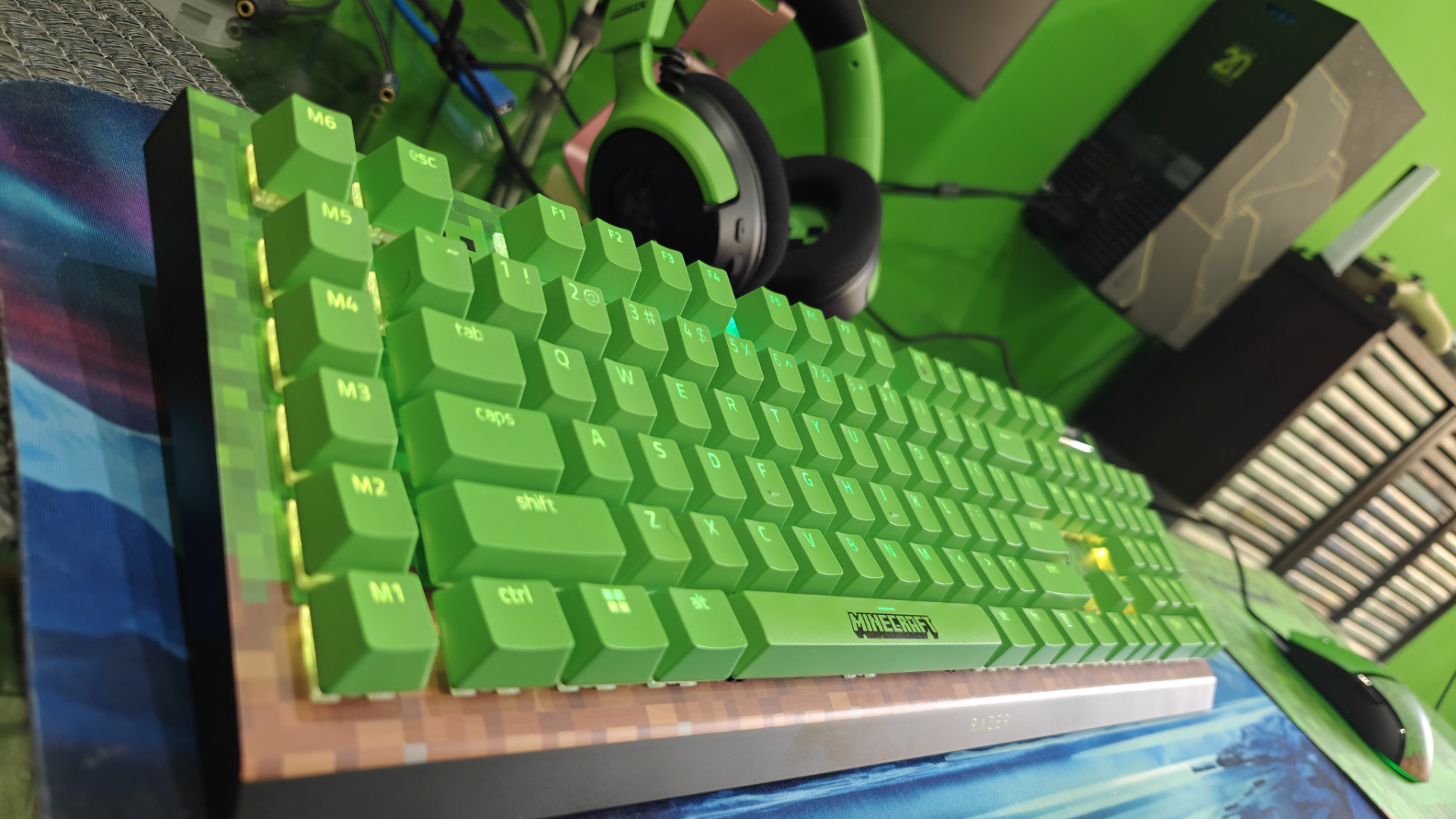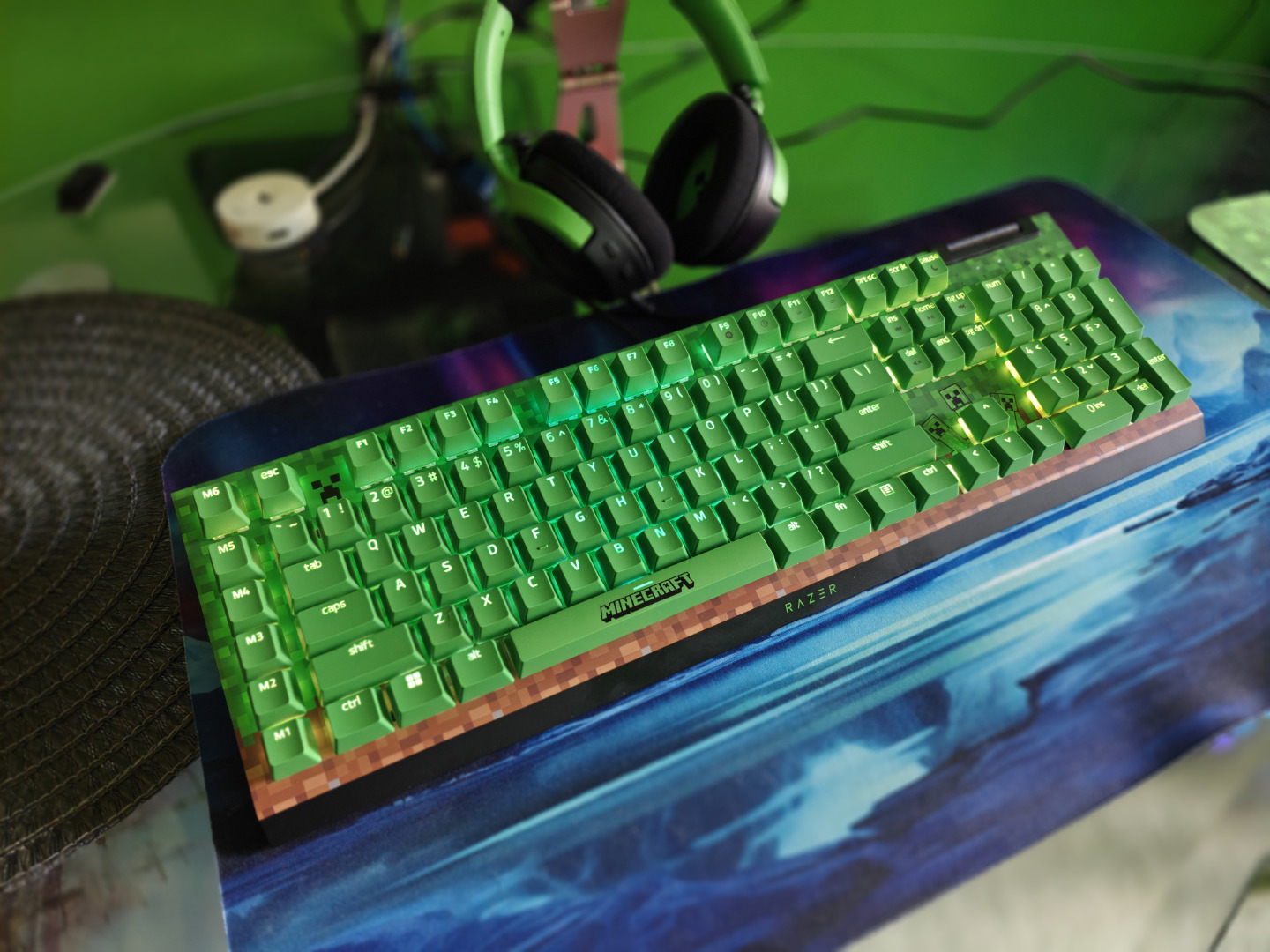 Na pierwszy ogień wybraliśmy klawiaturę, na której zresztą właśnie tworzę tą recenzję. To znany i lubiany model BlackWidow V4 X ozdobionymi dodatkowym malowaniem wraz z kilkoma sprytnie ukrytymi creeperami prosto z Minecrafta.