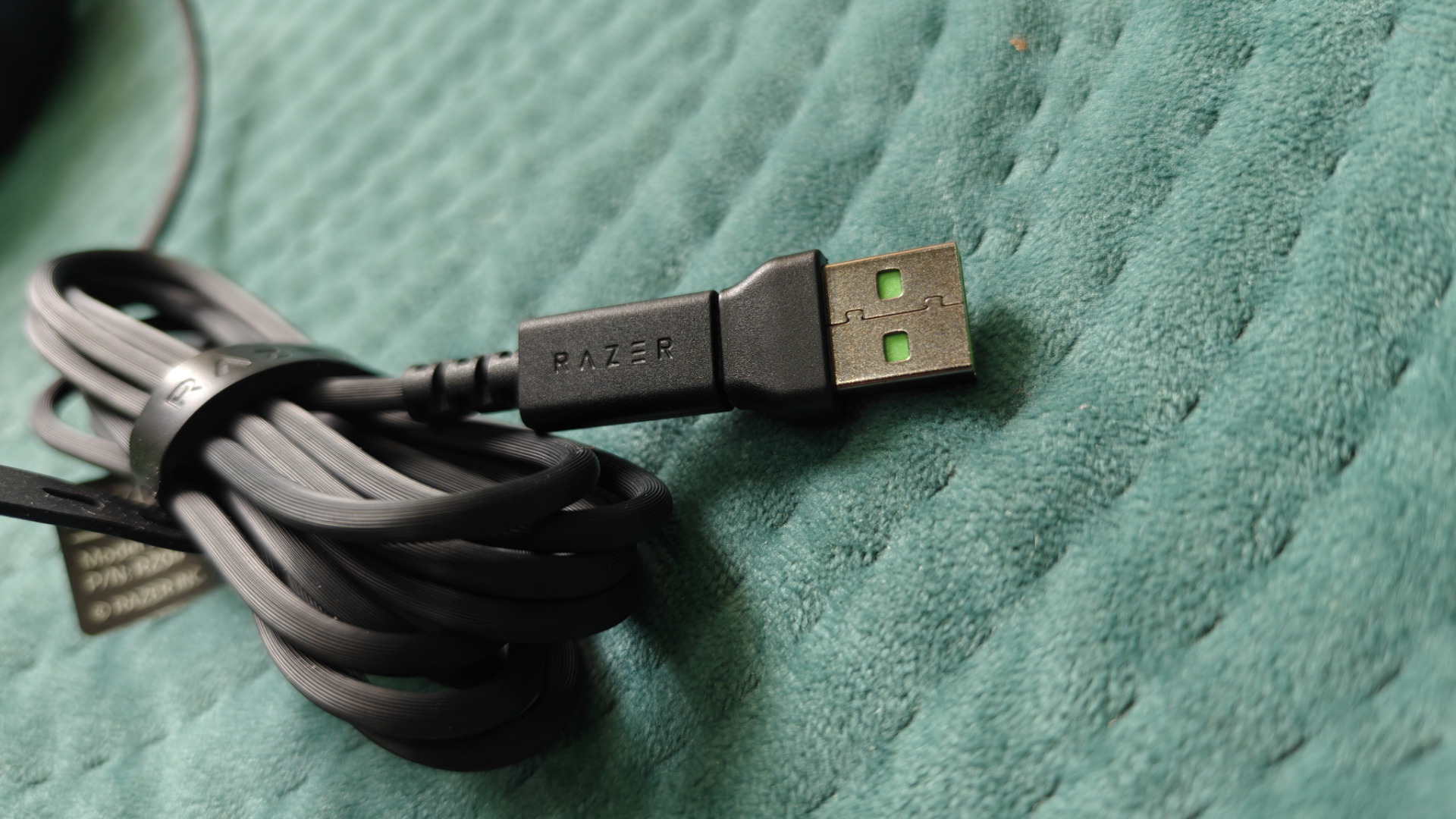 Ostatnim elementem zestawu są słuchawki. To przewodowe konstrukcje, choć zamiast typowego kabla jack mamy tutaj do czynienia z wyjściem USB. Razer wiedząc, że nie każdy posiada najnowocześniejsze USB typu C zdecydował się dołączyć do zestawu przejściówkę na USB typu A, naturalnie w charakterystycznym zielonkawym odcieniu.