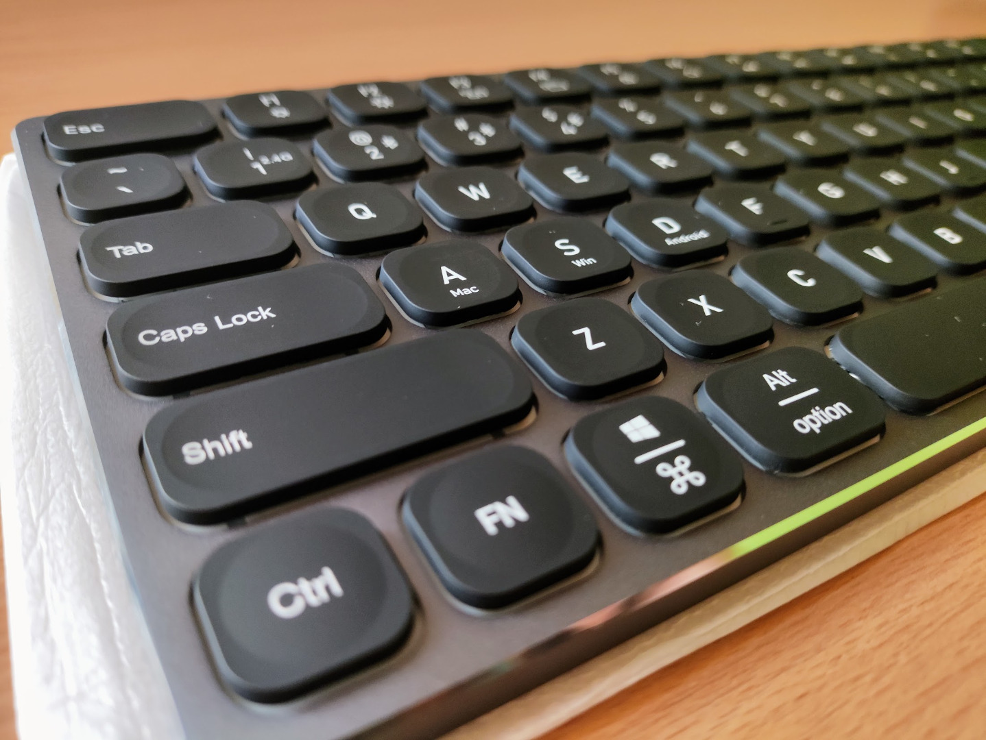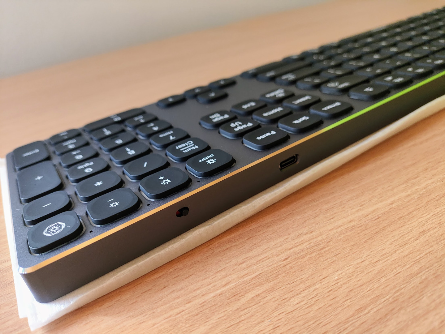 Dioda sygnalizująca poziom naładowania jest niewielka i łatwo przeoczyć, kiedy informuje nas o rozładowaniu urządzenia. Przez to zdarzało się, że klawiatura wyłączała się kompletnie z zaskoczenia. Na szczęście, po podłączeniu zasilania, możemy praktycznie natychmiast wznowić pracę. Niemniej jednak, umiejscowienie tak kluczowej informacji nie zostało dobrze przemyślane. Gdy korzystamy z podświetlenia klawiszy, dioda jest ledwie widoczna.