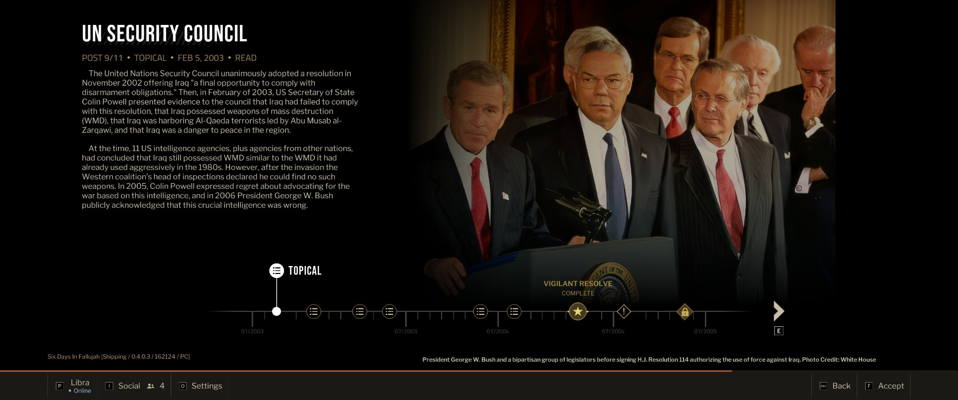 Odpowiedź na to pytanie nie jest łatwa. Dwie misje fabularne starają się, przynajmniej w przerywnikach filmowych, przedstawić konflikt w Faludży z dużym szacunkiem dla prezentowanych wydarzeń. Otrzymujemy w nich odtworzone rzeczywiste wydarzenia, prawdziwe nagrania bitewne oraz wywiady z naocznymi świadkami starć — zarówno Amerykanami jak i Irakijczykami. Jeżeli współczesne konflikty zbrojne mieszczą się w obszarze waszych zainteresowań, to prawdopodobnie informacje serwowane przy okazji misji was zaciekawią.