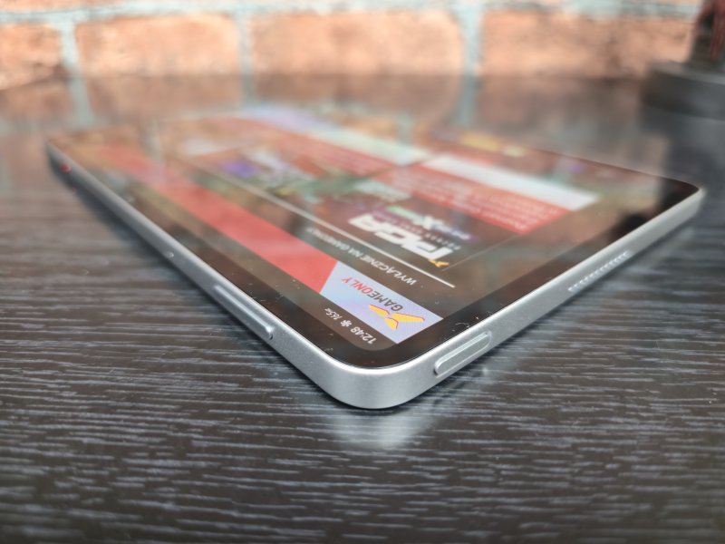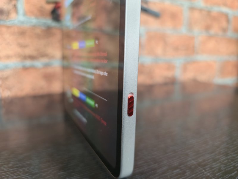 Jeśli patrzymy na ekran tabletu frontalnie, to w górnej części dojrzymy mały obiektyw, służący do podglądania nas przez chiński rząd znaczący miejsce przedniego aparatu. Na lewej ramce znajdziemy port ładowania USB-C, głośnik oraz mikrofon, podczas gdy na prawej – drugi głośnik, wraz z przyciskiem zasilania, w który wmontowano czytnik odcisków palców.