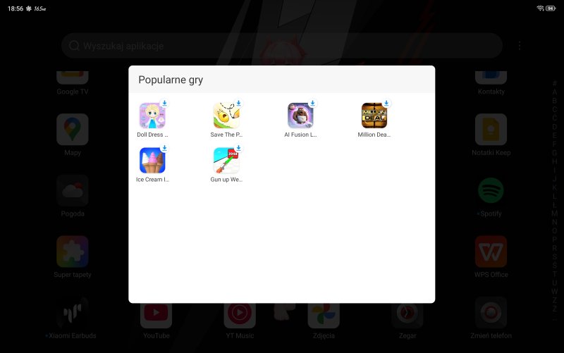 Te drugie natomiast to pewien budżetowy standardzik, w postaci Facebooka, Booking.com i TikToka. W menu głównym znajdziemy nawet specjalny folder, dedykowany grom i aplikacjom, które możemy pobrać jednym kliknięciem – szkoda tylko, że są to pierdy pokroju AI Fusion, Doll Dress czy Save The Potato. Nie znacie? No patrzcie, ja też nie miałem pojęcia o tych produkcjach i patrząc na ikonki, jakoś nie uważam, żeby mnie wiele ominęło…