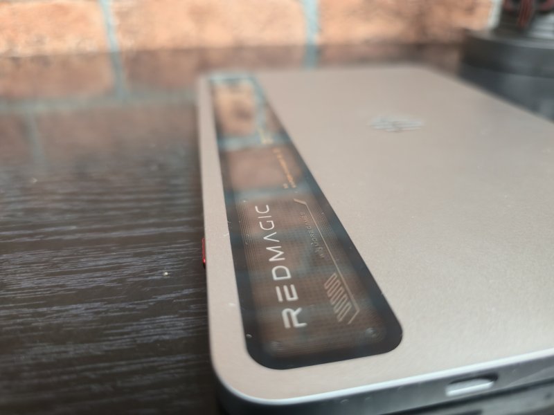 Na górnej ramce znalazł się przycisk do sterowania głośnością, drugi mikrofon oraz przełącznik, o którym więcej napiszę nieco później. Dolna część ramki nie skrywa przed użytkownikiem żadnych tajemnic i jest, zwyczajnie rzecz ujmując pusta. Tył z kolei zdobi logo Redmagic, dumnie ustawione pośrodku oraz szklana wstawka, za którą znajdziemy napis Redmagic, zdolny do zmiany kolorów w rytm muzyki (i nie tylko) oraz obiektywy aparatu głównego wraz z latarką.