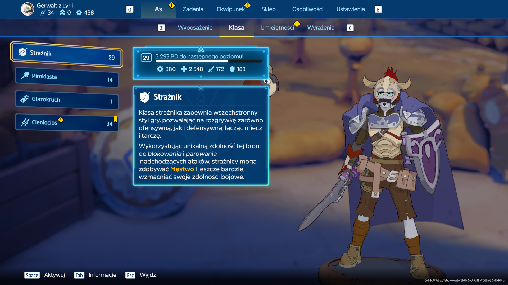 Uzbrojony w miecz i tarczę strażnik to propozycja teoretycznie najbardziej nastawiona na defensywę, chociaż takie podejście nie ma w grze zbyt wiele sensu. Tarcza pozwala blokować i parować ataki, ale sprawdza się to tylko w potyczkach z niewielką liczbą przeciwników. Im wyższy poziom, tym zastępy stawianych przed nami oponentów robią się coraz liczniejsze. W końcu dochodzimy do momentu, gdzie czytelność tego, co dzieje się na ekranie, staje się tak mała, że jedyne co robimy, to wyprowadzamy kolejne ciosy na oślep.
