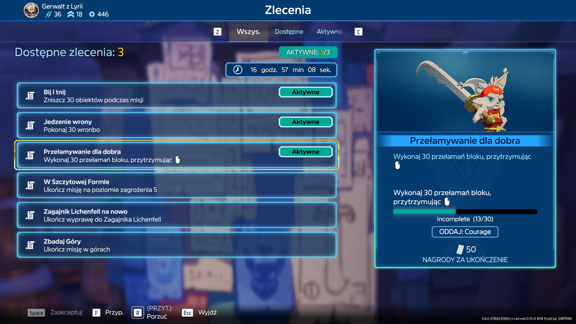 Sztabek w Sklepie nie wykupimy i aby je zdobyć, musimy podejmować się codziennych zadań dostępnych na tablicy zleceń. Misje te są powtarzalne i bardzo proste, zazwyczaj wykonujemy je przy okazji. Polegają, na przykład, na wyczyszczeniu jakiejś mapy, pokonaniu danej liczby przeciwników określonego typu czy wykonaniu pewnej czynności, jak przełamanie bloku. W nagrodę dostajemy zazwyczaj 50 sztabek za ukończenie pojedynczego zlecenia. Biorąc pod uwagę ceny kolejnych przedmiotów możliwych do odblokowania w danej Osobliwości, to wykupienie wszystkich wymaga wiele dni grania. Odnoszę wrażenie, że trochę zbyt wiele jak na nagrody, jakie możemy w ten sposób uzyskać.