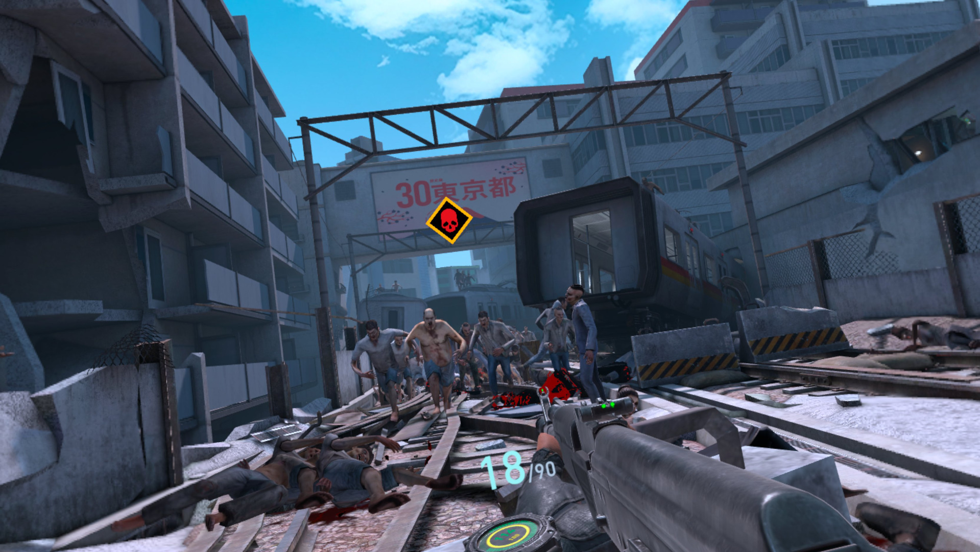 Akcja w World War Z VR przenosi nas w rejony Nowego Yorku, Tokio oraz Marsylii, a każde z nich oferuje trzy misje w danym regionie, których przejście zajmuje około 40 minut. Gra koncentruje się na rozgrywce, podczas gdy fabuła pełni funkcję drugorzędną i wykorzystywana jest jedynie jako pretekst do zabawy. Po zakończonej misji otrzymujemy doświadczenie zależne od naszych wyników podczas rozgrywki, odblokowując umiejętności, które mają wzmacniać gracza podczas rozgrywki. Tytuł nie oferuje języka polskiego w żadnej formie, ale cele misji są wręcz banalne i dobrze oznaczone. Szczerze wątpię, by ktoś mógł zgubić się w tej grze.